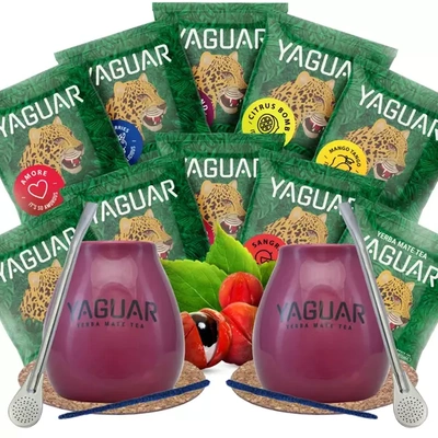 Coffret Yerba Maté pour deux : échantillons 3×50g + 2x Calebasse + 2x Bombilla