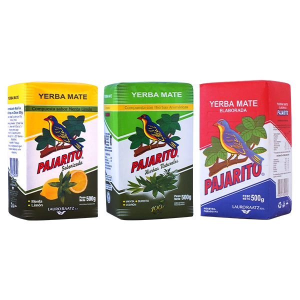 Set de Yerba Maté : Pajarito Elaborada Con Palo + Saborizada + Hierbas Naturales 3 x 500g