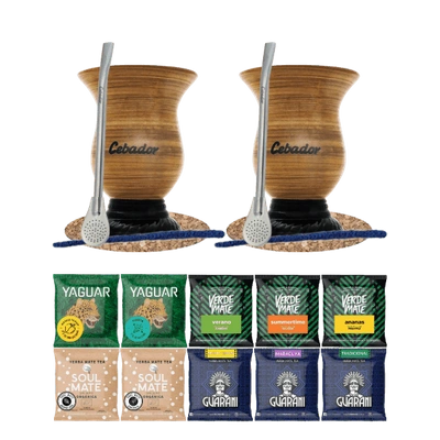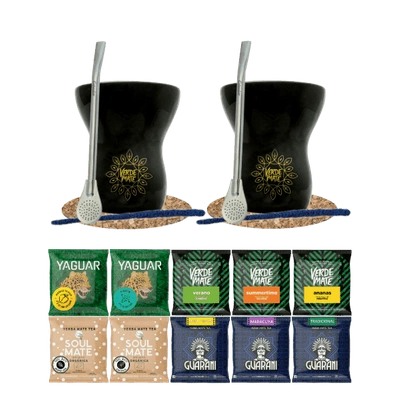Set de Maté : 2x Calebasse + 2x Bombilla + Échantillons 10x50g