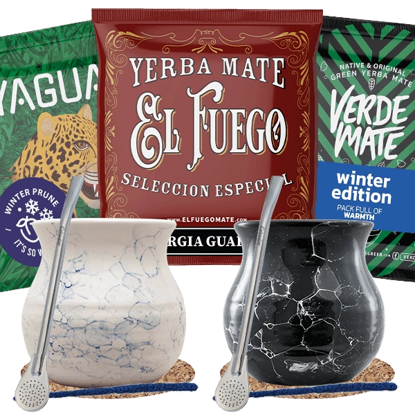 Set de Maté : 2x Calebasse + 2x Bombilla + Échantillons 10x50g