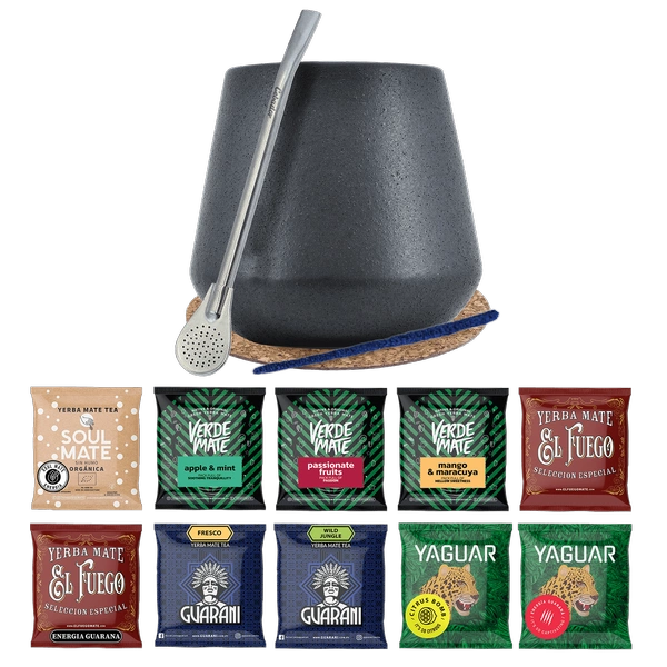 Set de Maté de démarrage : échantillons Yaguar 10x50g + Calebasse + Bombilla