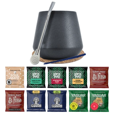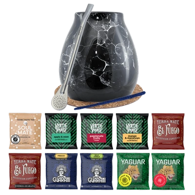 Yerba Mate Set 10x50g Calabash Marmol Bombilla