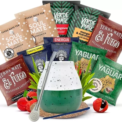 Yerba Mate set 10x50g Calebasse + Bombilla