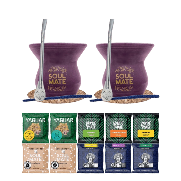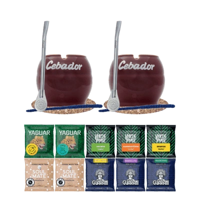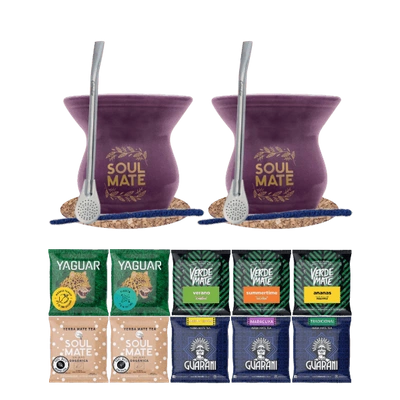 Set de Maté : 2x Calebasse + 2x Bombilla + Échantillons 10x50g
