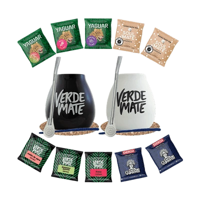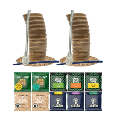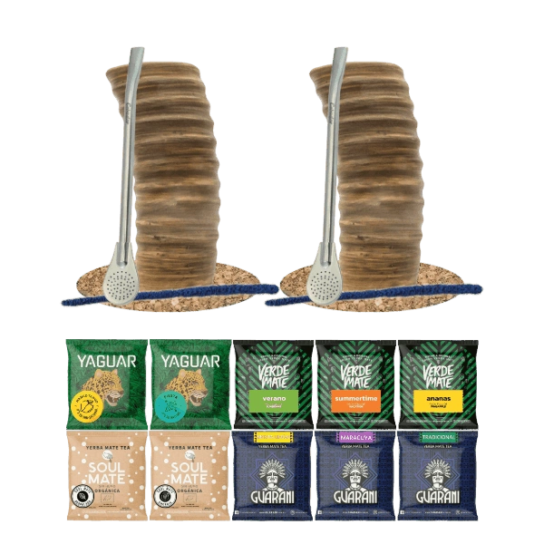 Set de Maté : 2x Calebasse + 2x Bombilla + Échantillons 10x50g