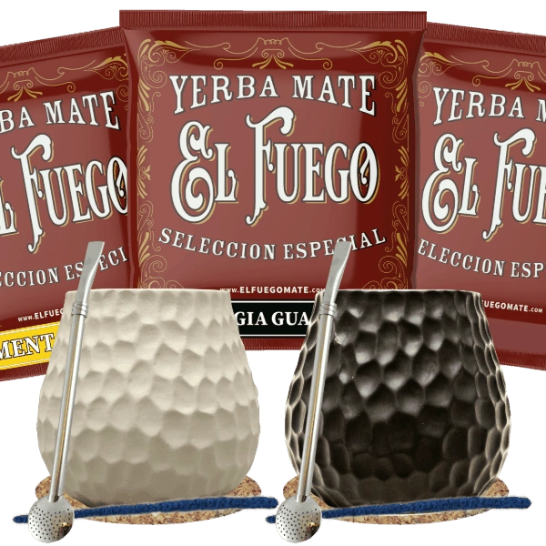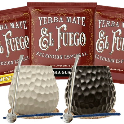 Set de Maté pour deux : échantillons El Fuego 3x50g + 2x Calebasse + 2x Bombilla