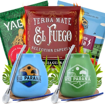 Yerba Maté Rio Parana Set POUR DEUX Calebasse Bombilla