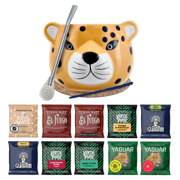 Yerba Mate Set 10x50g Calebasse Gatito Bombilla