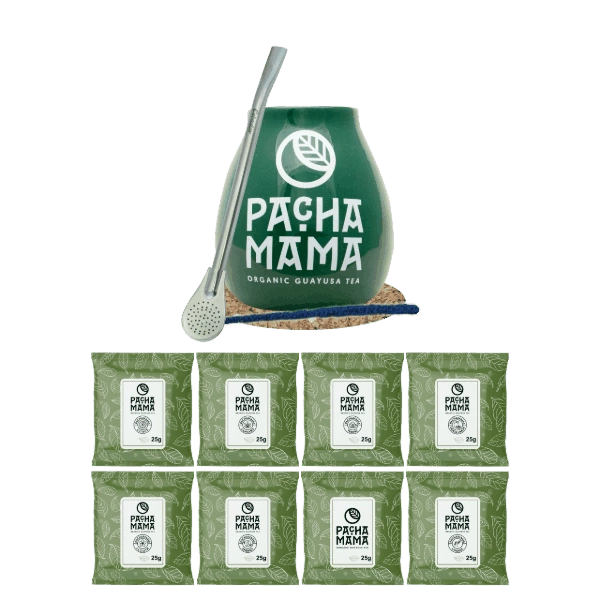 Set de Guayusa Pachamama : échantillons 8x25g + Calebasse + Bombilla
