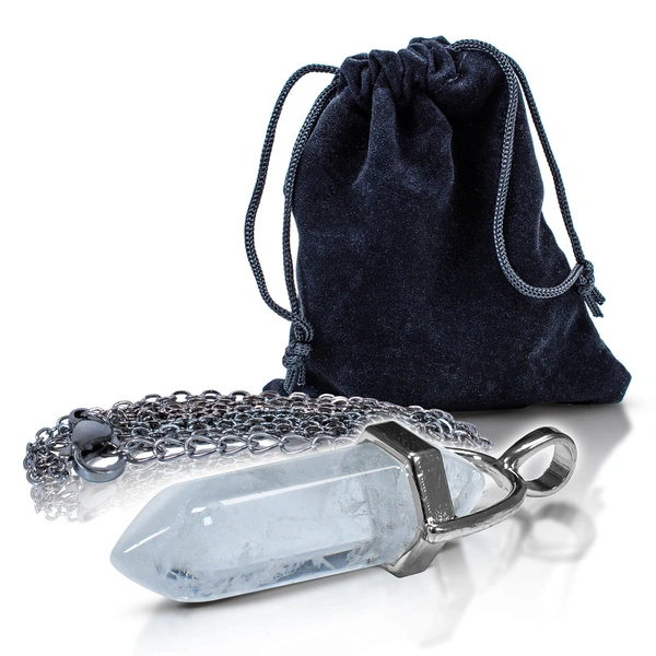 Pendentif en cristal de roche dans un sachet + chaîne