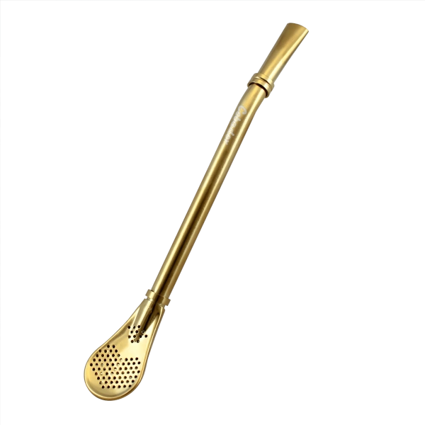 Bombilla en acier inoxydable très soignée, légèrement courbée. Elle est munie d'un élément filtrant en forme de tamis. Cette conception simple permet une bonne filtration et une consommation sans problème.